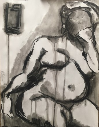 My work is largely figurative, with some experimentation in landscape and abstraction. I am drawn to the physicality of the human being, the flesh filled out, rounded, dimpled, and proudly on display. Most of my drawings are made during live life-drawing sessions, with models who are nondisabled. On occasion, I have had the good fortune to work with pregnant models, but so far none of the models has been obviously disabled. That is why I also do collage.